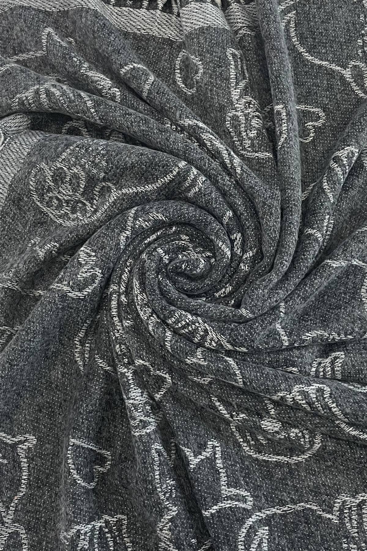 Fashion Scarf World - Cute Dog & Love Heart Reversible Print Tassel Scarf: Charcoal