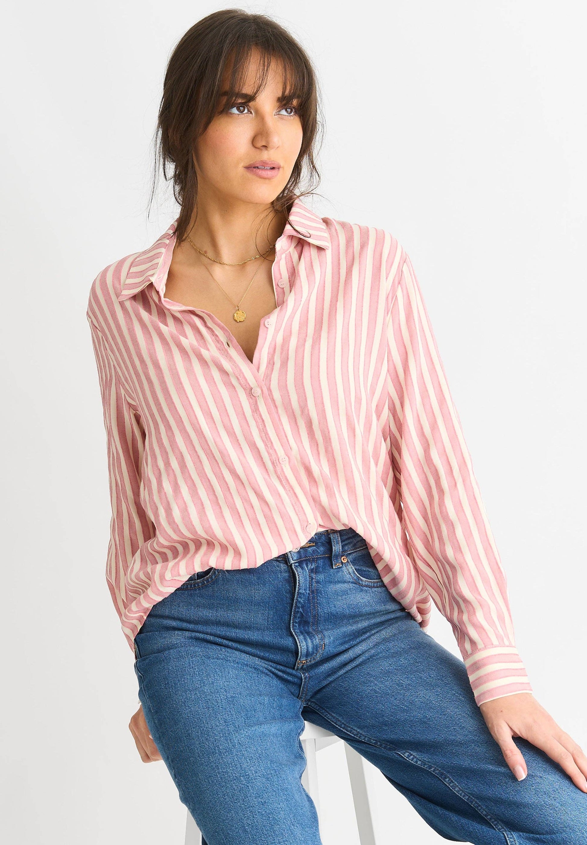 GINI LONDON - Blush Stripe Viscose Oversized Shirt: 50% Viscose & 50% Polyester / L-XL (UK 14-16/US 10-12/EU 42-44)