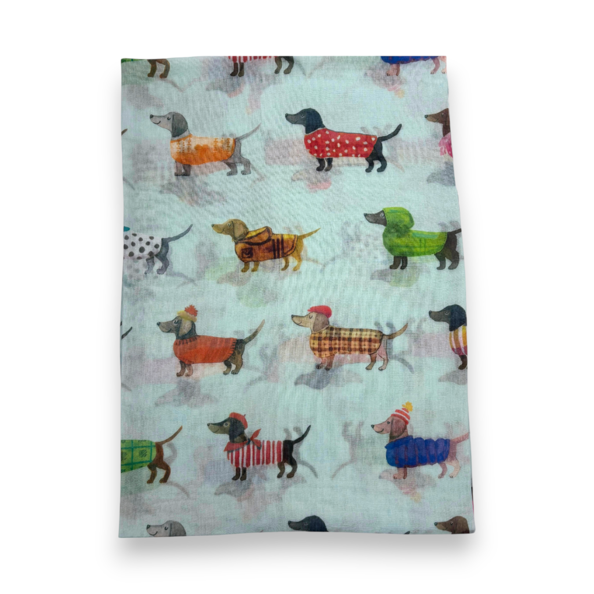 This beautiful Fashion Dogs Digital Print Modal Blend Scarf is available in 5 different colors. It has an extremely buttery-soft feel and is composed of 80% modal and 20% cotton—perfect for a fun, playful touch and ideal to wrap around any outfit during the warmer weather.