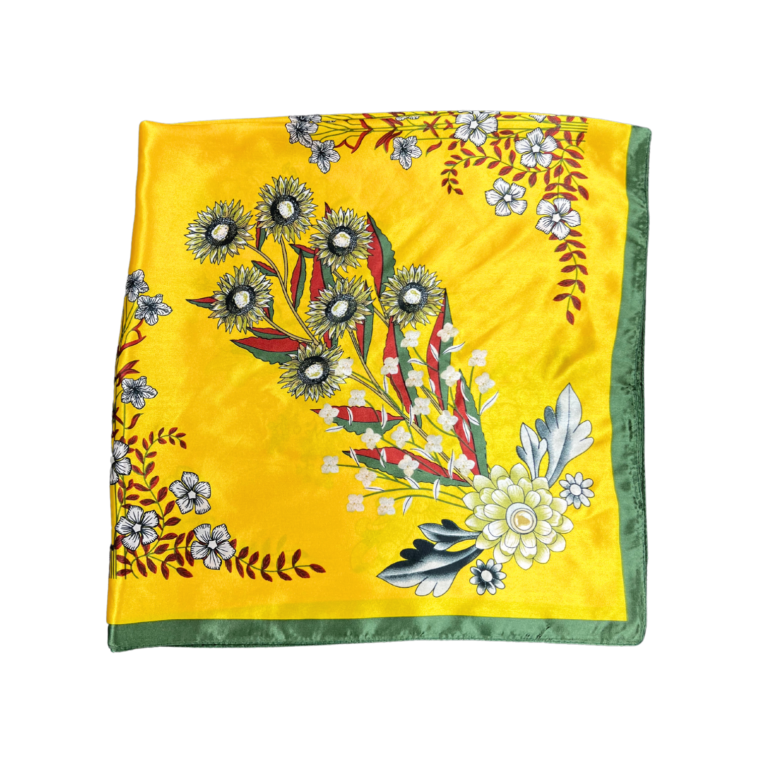 Lili Scarves - Multi-floral Pattern Silk Touch Square Scarf: Yellow