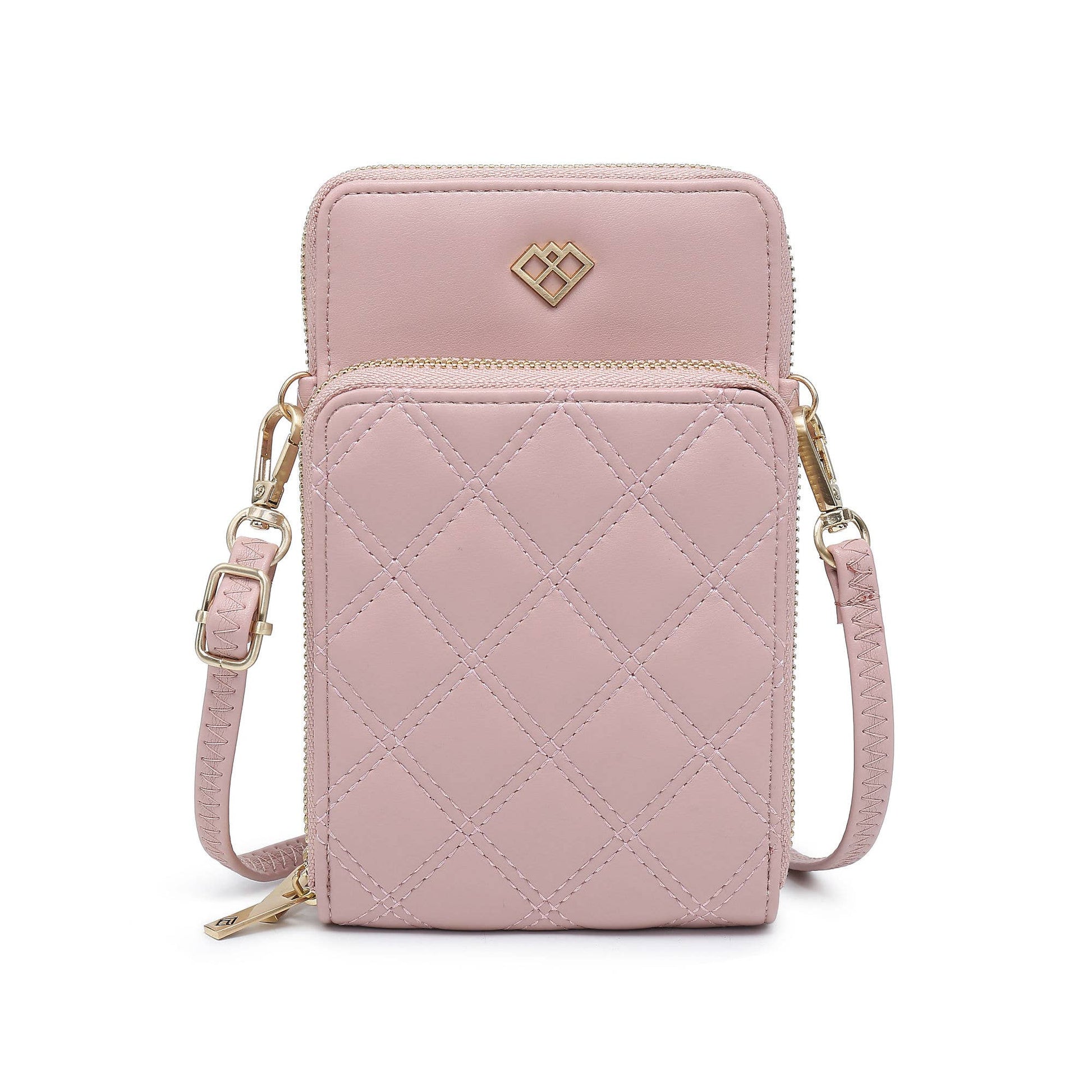 Phone Bag / Purse with Quilted Diamond Pattern, Two Zipped Compartments and detachable long strap.