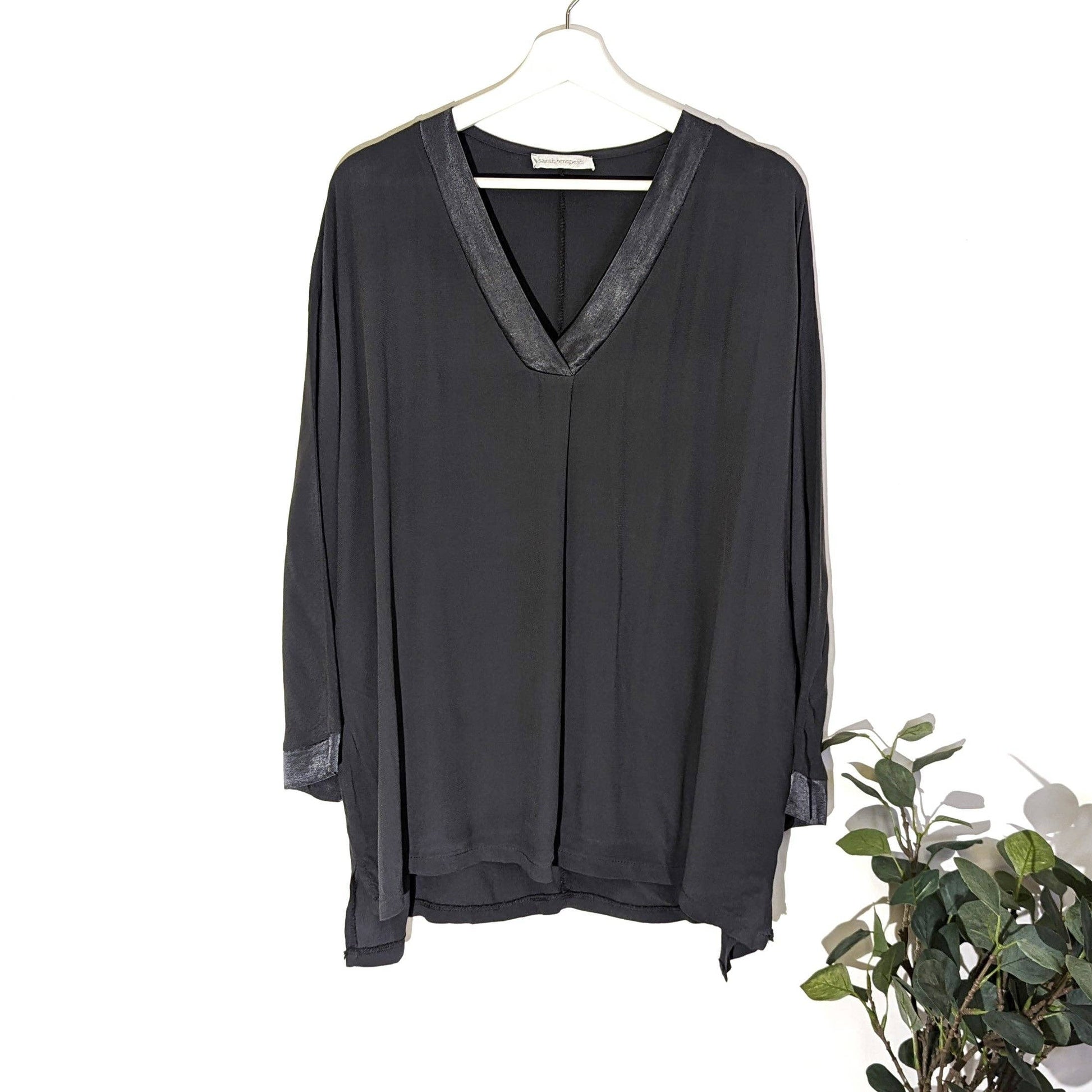 Classic v-neck long sleeve plain top with satin edge (M-L)